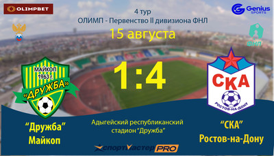 Сегодня на республиканском стадионе «Дружба» состоялся матч 4-го тура Олимп – Первенства ll дивизиона ФНЛ. Майкопская «Дружба» встречалась с ...