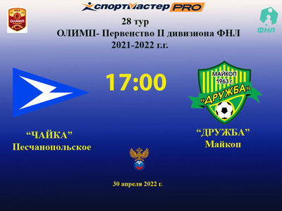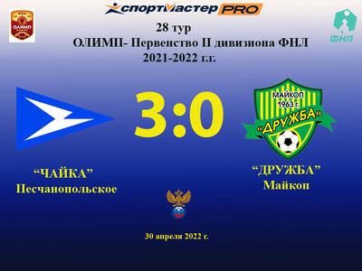 Сегодня состоялся матч 28-го тура турнира Олимп-Первенство команд II дивизиона ФНЛ 2021-2022 годов. «Дружба» встречалась с командой «Чайка». Хозяе ... Желаем удачи «Дружбе» в очередном матче турнира!