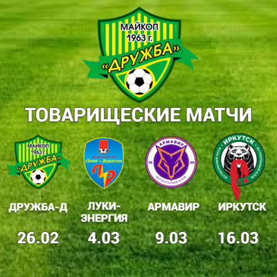 26 февраля «Дружба» проведёт первый из четырёх товарищеских матчей в рамках третьего учебно-тренировочного сбора.