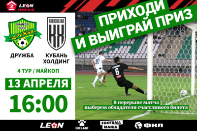 В Майкопе завершился матч 4-го тура LEON Второй лиги Б в группе 1 между «Дружбой» и «Кубань Холдингом». «Дружба» - «Кубань Холдинг»: ничья после первого тайма
