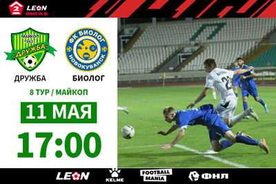 В матче 8-го тура LEON Второй лиги Б в группе 1 майкопская «Дружба» одержала в домашнем матче против ФК «Биолог Новокубанск» убедительную победу со счётом 3:0. В пер ... Играем дома с ФК «Биолог Новокубанск»