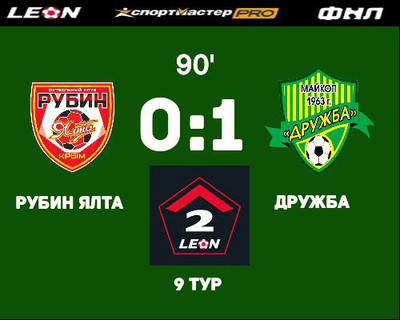 «Дружба» обыграла ФК «Рубин Ялта» с минимальным счётом 1:0. Единственный гол в этом матче на 50-й минуте забил Даниил Антоненко. Майкопчане могли ... «Дружба» сыграет с ФК «Рубин Ялта» на выезде 9 сентября