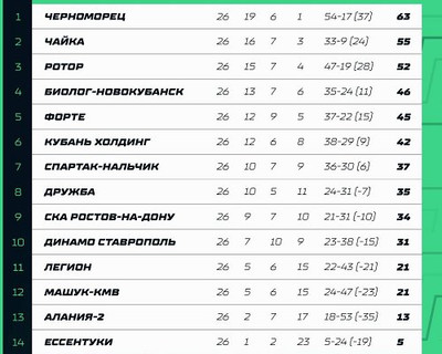 Итоговая таблица первого этапа. «Дружба» оказалась самой бескомпромиссной командой турнира – в активе майкопчан всего пять матчей, сыгранных вничью. ...Майкопская «Дружба» обыграла на выезде ставропольское «Динамо»