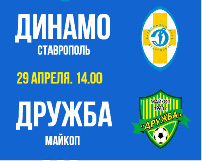 26-й тур первенства «Дружба» проведёт на выезде в Ставрополе. Игра с местным «Динамо» состоится 29 апреля. В последних матчах у обеих кома ... Майкопская «Дружба» уступила новороссийскому «Черноморцу»