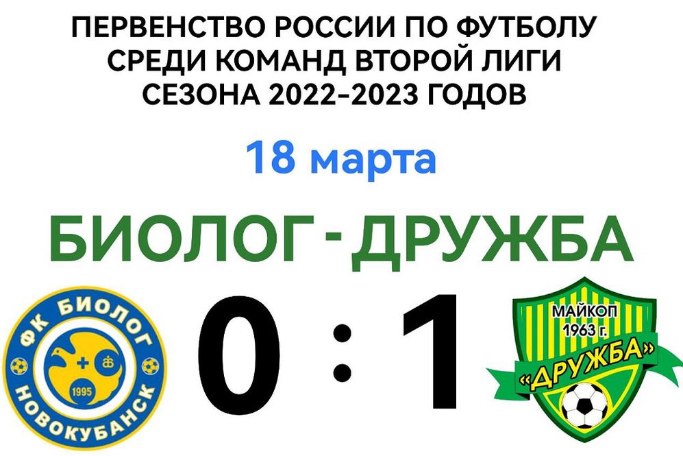 1 апреля состоится матч 22-го тура Первенства России по футболу среди команд Второй Лиги сезона 2022-2023 годов. Соперником майкопской «Дружбы» будут футболис ... Турнирное положение команд после 21-го тура