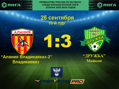 Сегодня «Дружба» провела матч 10-го тура Первенства России по футболу среди команд Второй Лиги сезона 2022-2023 годов. Соперником майкопчан была к ... Статистика встреч между командами «Дружба» и «Алания Владикавказ-2»