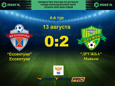 21 августа состоится матч 5-го тура Первенства России по футболу среди команд Второй Лиги сезона 2022-2023 годов. Соперником майкопской «Дружбы» будут футболи ... Поздравляем «Дружбу» с первой победой в сезоне!