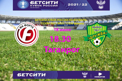 Сегодня в городе Таганроге «Дружба» провела матч 1/256 финала розыгрыша Бетсити Кубка России по футболу. Соперником майкопчан стал местный футбольный клуб «Форте». «Дружба» примет участие в розыгрыше Бетсити Кубка России по футболу.